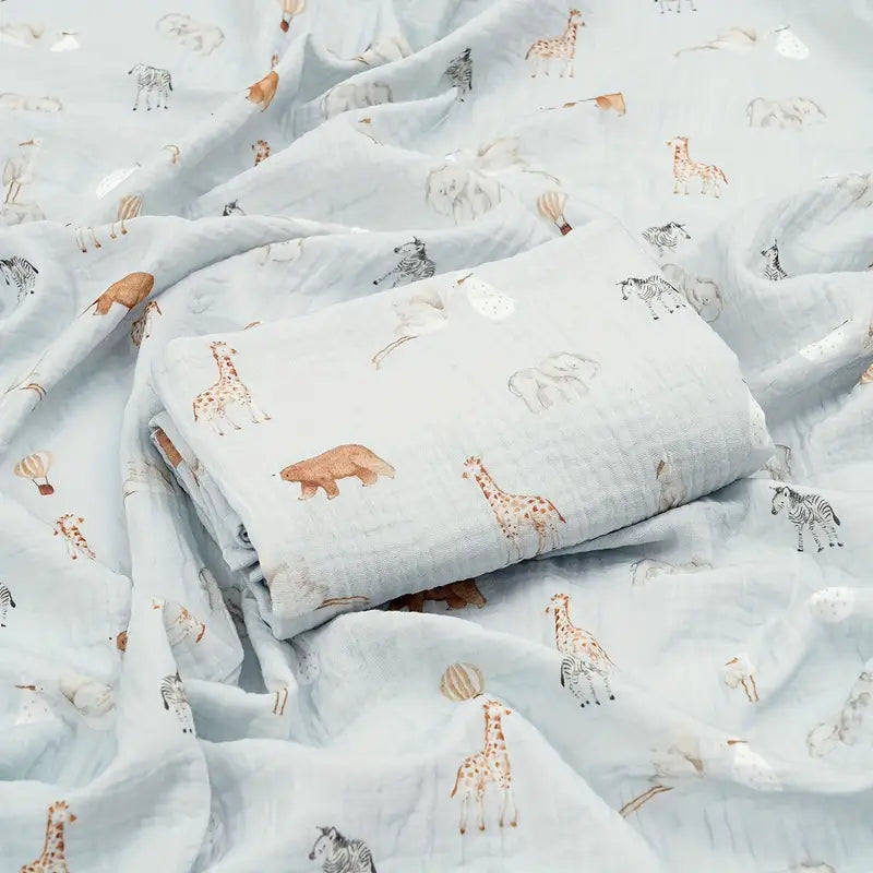 Set de tres delicadas sábanas 2 de muselina de algodón orgánico y una de bambú. Hipoalergénicas, protegen de los rayos uv, especiales para pieles sensibles, absorben la humedad y los olores manteniendo así la piel fresca y seca.