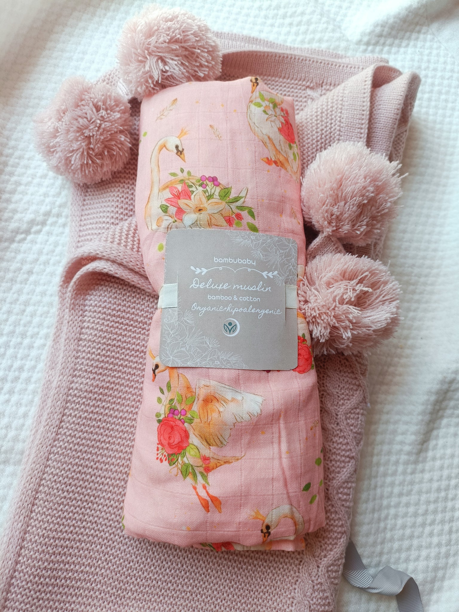 1. Set de una sábana de muselina de bambú orgánico extra suave, termosensible  e hipoalergénica  y una cobija tejida de hilo cotton, cálida y suave  , el set perfecto para tu pañalera.