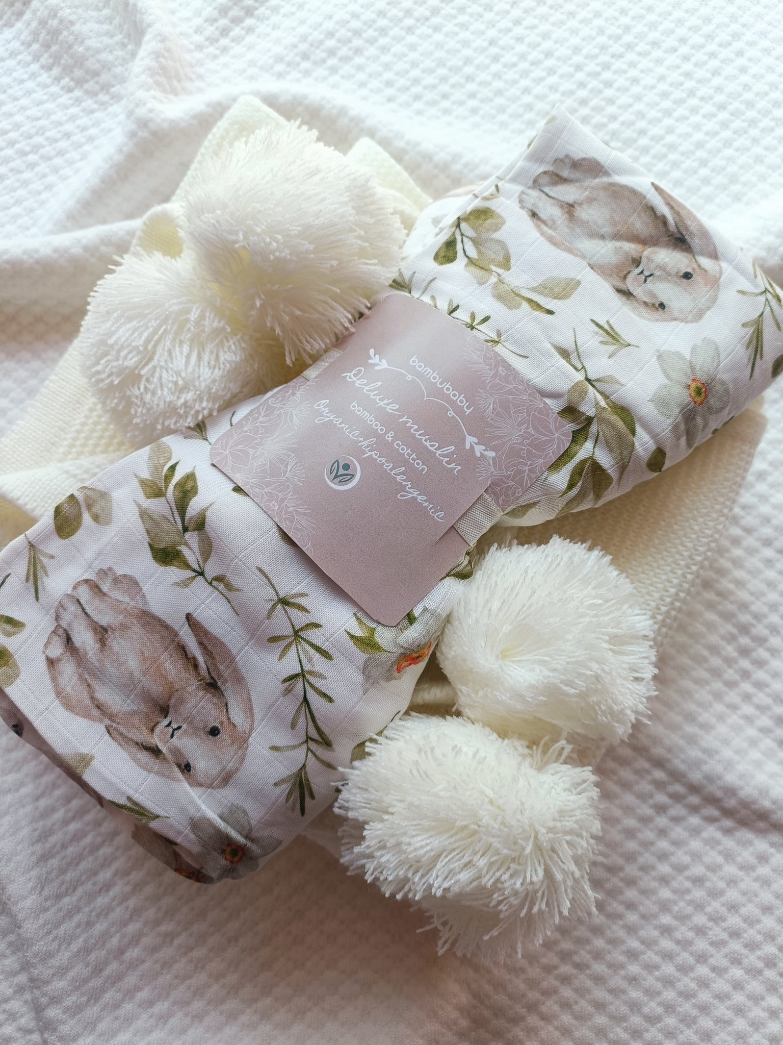 1. Set de una sábana de muselina de bambú orgánico extra suave, termosensible  e hipoalergénica  y una cobija tejida de hilo cotton, cálida y suave  , el set perfecto para tu pañalera.